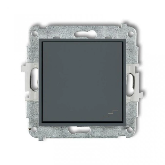 MINI Wyłącznik pojedynczy ze schodowym (wspólne zasilanie) grafitowy mat 28MWP-10.1 KARLIK