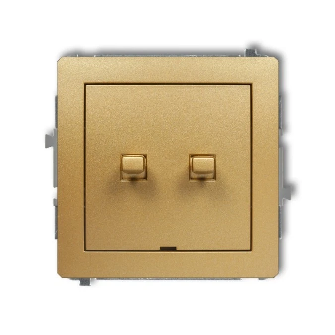 12. DECO Wyłącznik 2-biegunowy zwierny przycisk w stylu amerykańskim (dwa klawisze bez piktogramów osobne zasilanie) złoty 29DWPUS-4 37.85