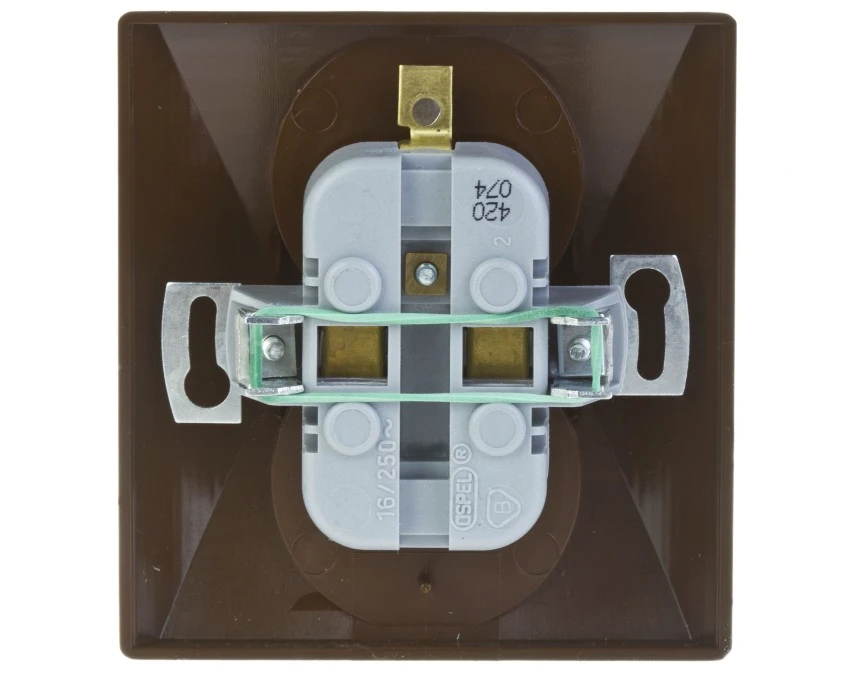 10. AKCENT Gniazdo podwójne z uziemieniem z funkcją niezamienności faz brązowy GP-2AC/24 OSPEL 16.96