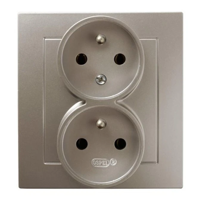 1. AS Gniazdo podwójne z/u z niezamiennością faz satyna light GP-2GC/45 29.09