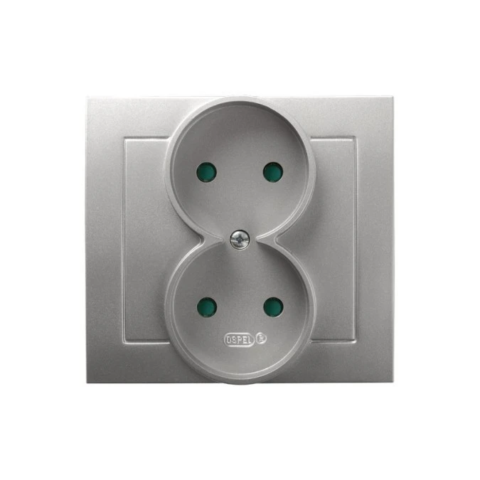 AS Gniazdo podwójne b/u z przesłonami srebro GP-2GP/18
