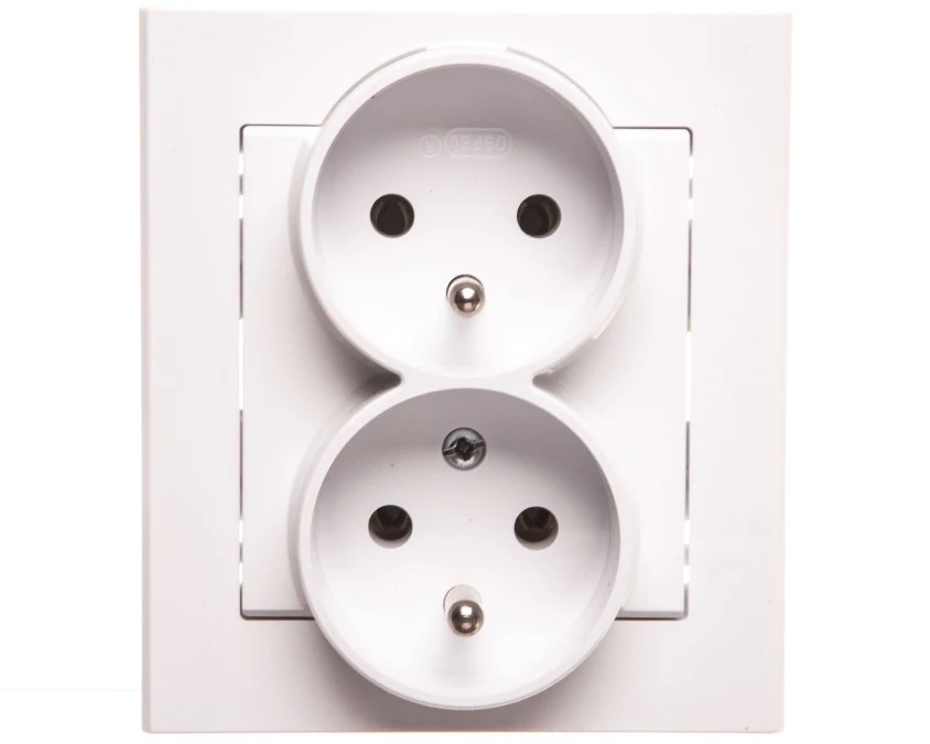 10. SONATA Gniazdo podwójne z uziemieniem z funkcją niezamienności faz, kompletne z ramką biały mat GP-2RC/75 35.29