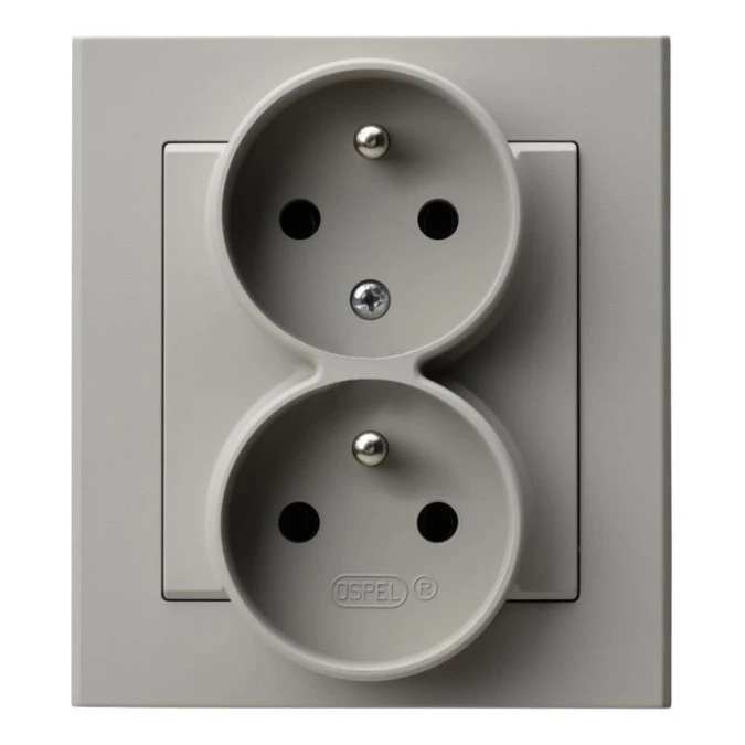 SONATA Gniazdo podwójne bez uziemienia niezmienność faz z ramką srebro mat GP-2RC/38 OSPEL