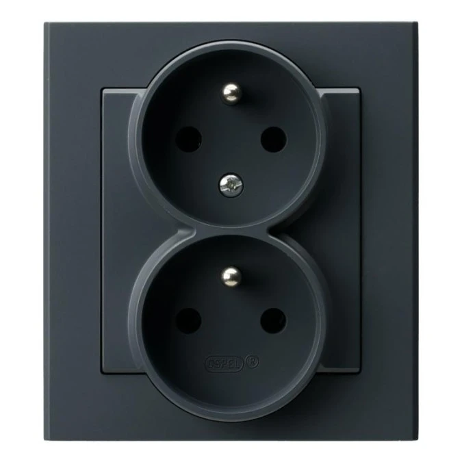 SONATA Gniazdo podwójne bez uziemienia niezmienność faz z ramką czarny metalik GP-2RC/33 OSPEL
