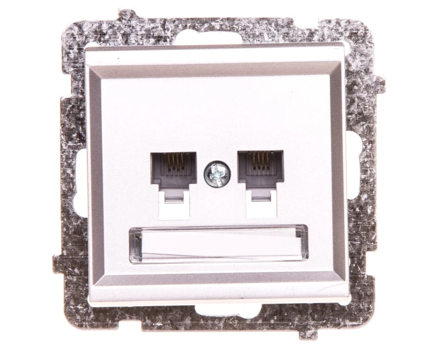 SONATA Gniazdo telefoniczne podwójne niezależne srebro mat GPT-2RN/m/38 OSPEL