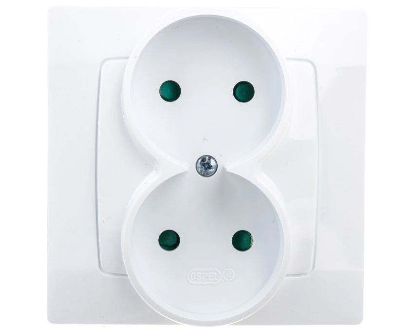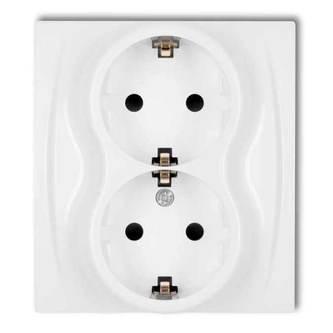 11. KARO Gniazdo podwójne bez uziemienia z przesłonami IP-20 zaciski gwintowe biały GP-2SP/00 OSPEL 19.11