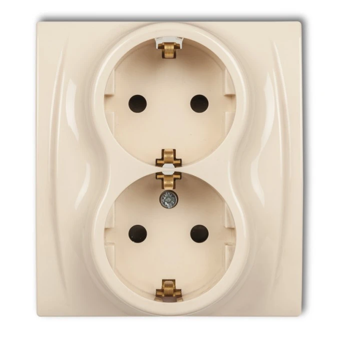 10. TREND Gniazdo podwójne z uziemieniem schuko (przesłony torów prądowych) beżowy 1GP-2sp KARLIK 18.81