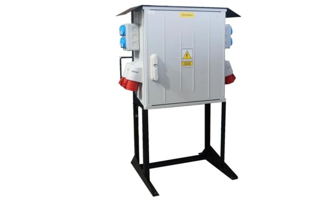 8. Rozdzielnica budowlana ERB160A4 na stojaku, IP54, gniazda: 1x CEE 63A, 2x CEE 32A, 1x CEE 16A, 8x GS 230V, wyłącznik główny 3728.99