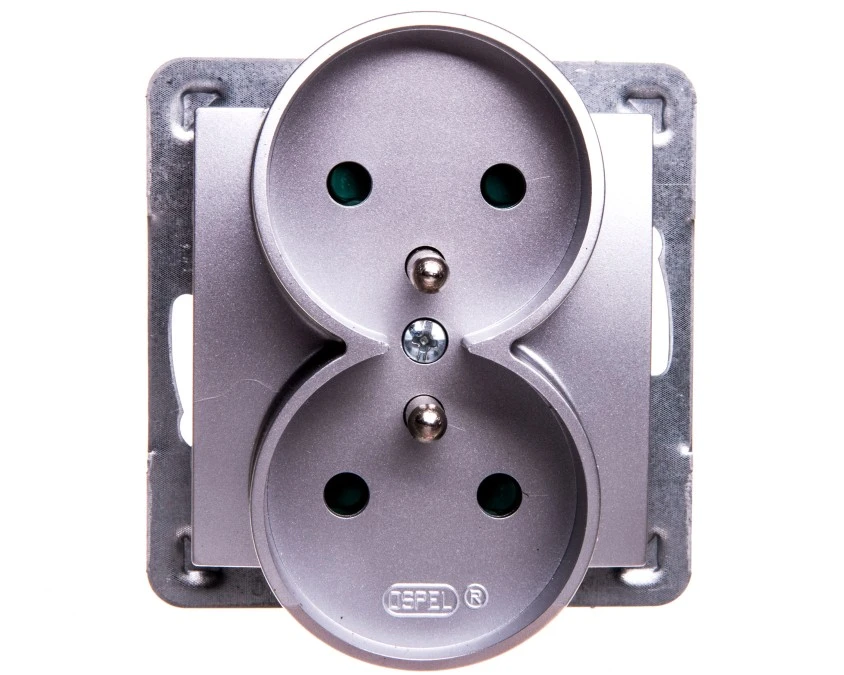 IMPRESJA Gniazdo podwójne z uziemieniem z przesłonami torów prądowych moduł bez ramki srebro GP-2YRZP/m/18 OSPEL