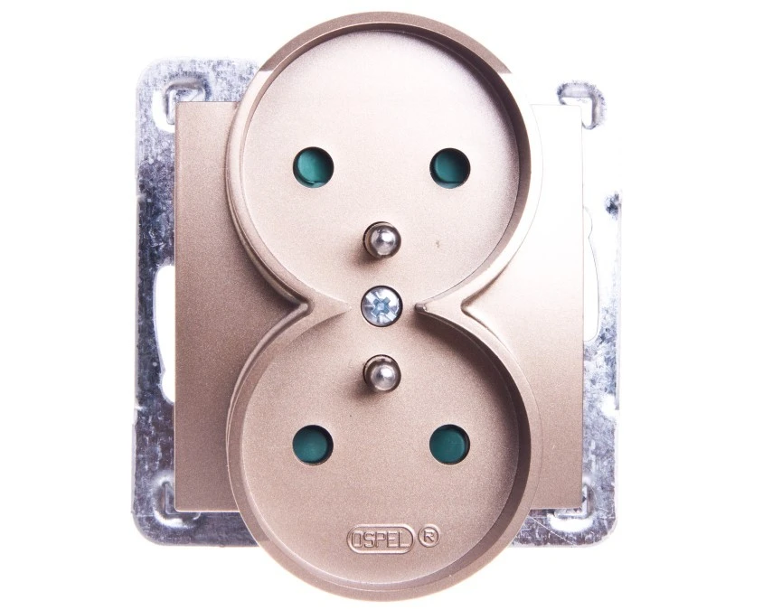 7. IMPRESJA Gniazdo podwójne z uziemieniem z przesłonami torów prądowych moduł bez ramki złoty metalik GP-2YRZP/m/28 OSPEL 28.76