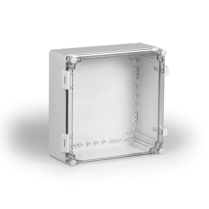 9. Obudowa naścienna Cubo W 300x300x132mm z zawiasami i zatrzaskami pokrywa przezroczysta IP67 PC WPCP303013T 517.19