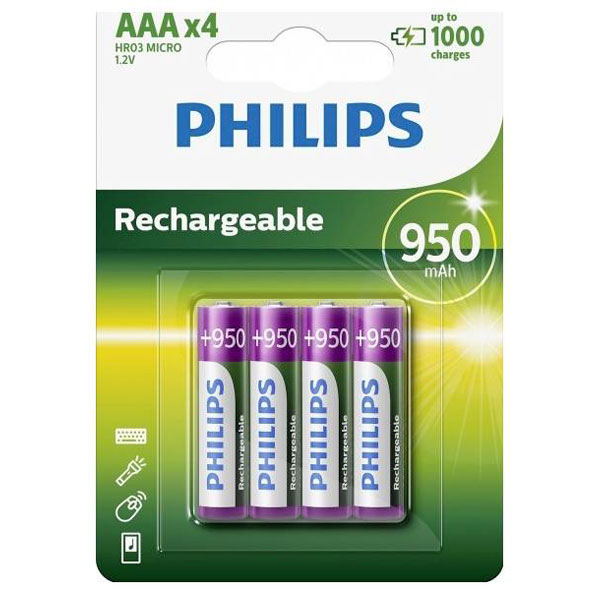 Philips 2286 HR03 AAA Rechargeable Battery NiMH 900mAh 4pk 1.2V