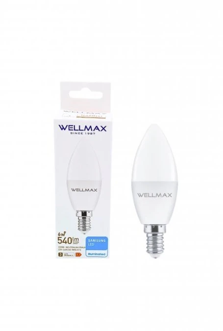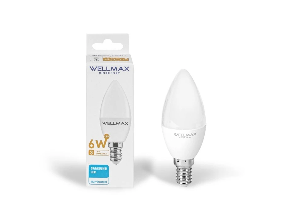 Żarówka WELLMAX LED 6W E14 Świeczka 90lm/W 540lm ...