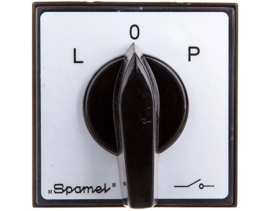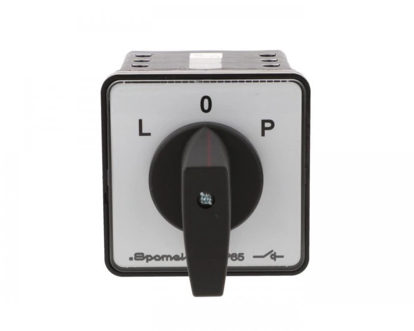 10. Łącznik krzywkowy 80A przełącznik zmiany kierunku obrotów L-O-P mocowany do pulpitu czoło szare pokrętło czarne SK80-3.8368\P03 302.10
