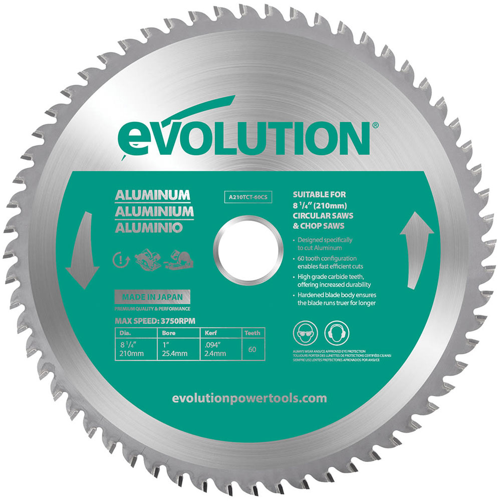 Evolution A210TCT-60MS Aluminium Cutting Mitre Saw Blade 210 x 25.4mm x 60T