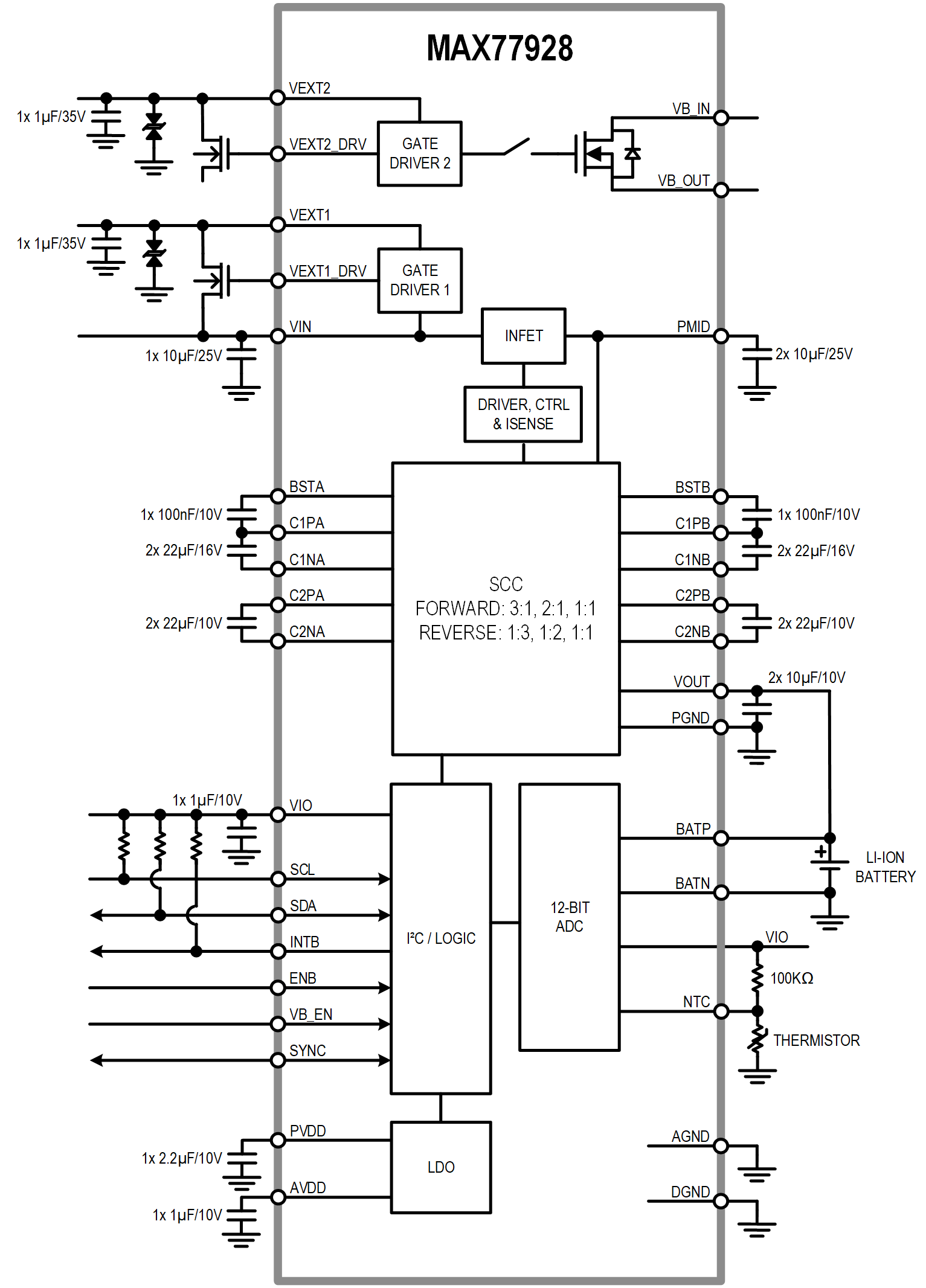The MAX77928 is a 10A bi-directional 3:1/2:1/1:1 ...