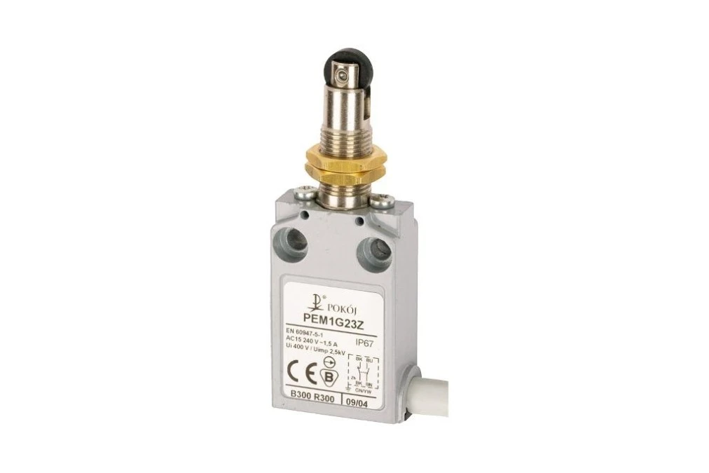 12. Wyłącznik krańcowy 1R 1Z wolnoprzełączający rolka z tworzywa Ø10,7 z mocowaniem za gwintowaną głowicę PEM1G23X A37-A89X 193.85