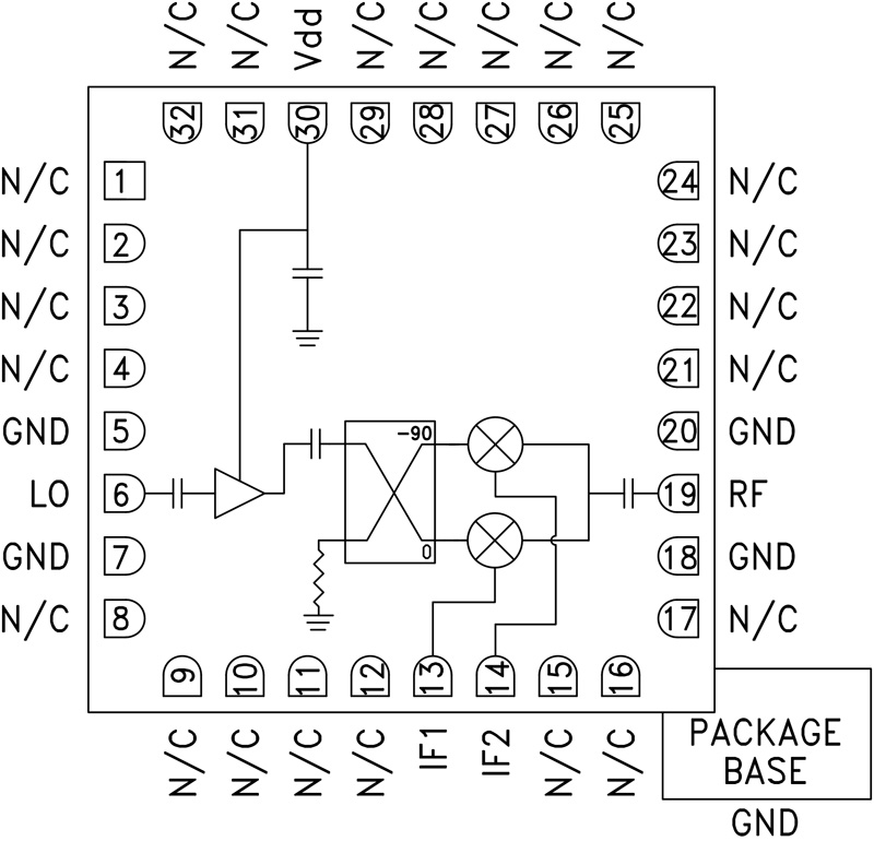 GaAs MMIC I/Q Mixer 15 - 33.5 GHz