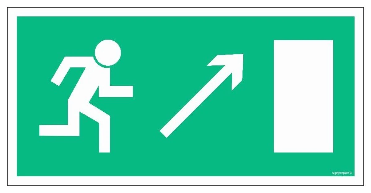 3. ZNAK - AC014 Wyjście ewakuacyjne w lewo w dół 60 x 30 cm PS - Płyta 1mm foto. 45.83