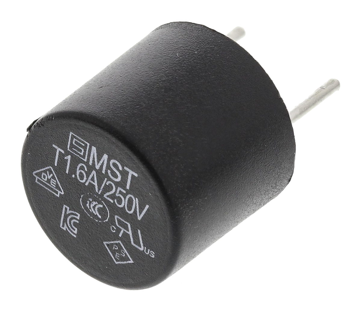1. Bezpiecznik nieresetowalny 1.6A 250V ac Schurter T Termoplastyczne 35 A przy 250 V AC, 50 A przy 125 V DC rozstaw 5.08mm 2.11 x100