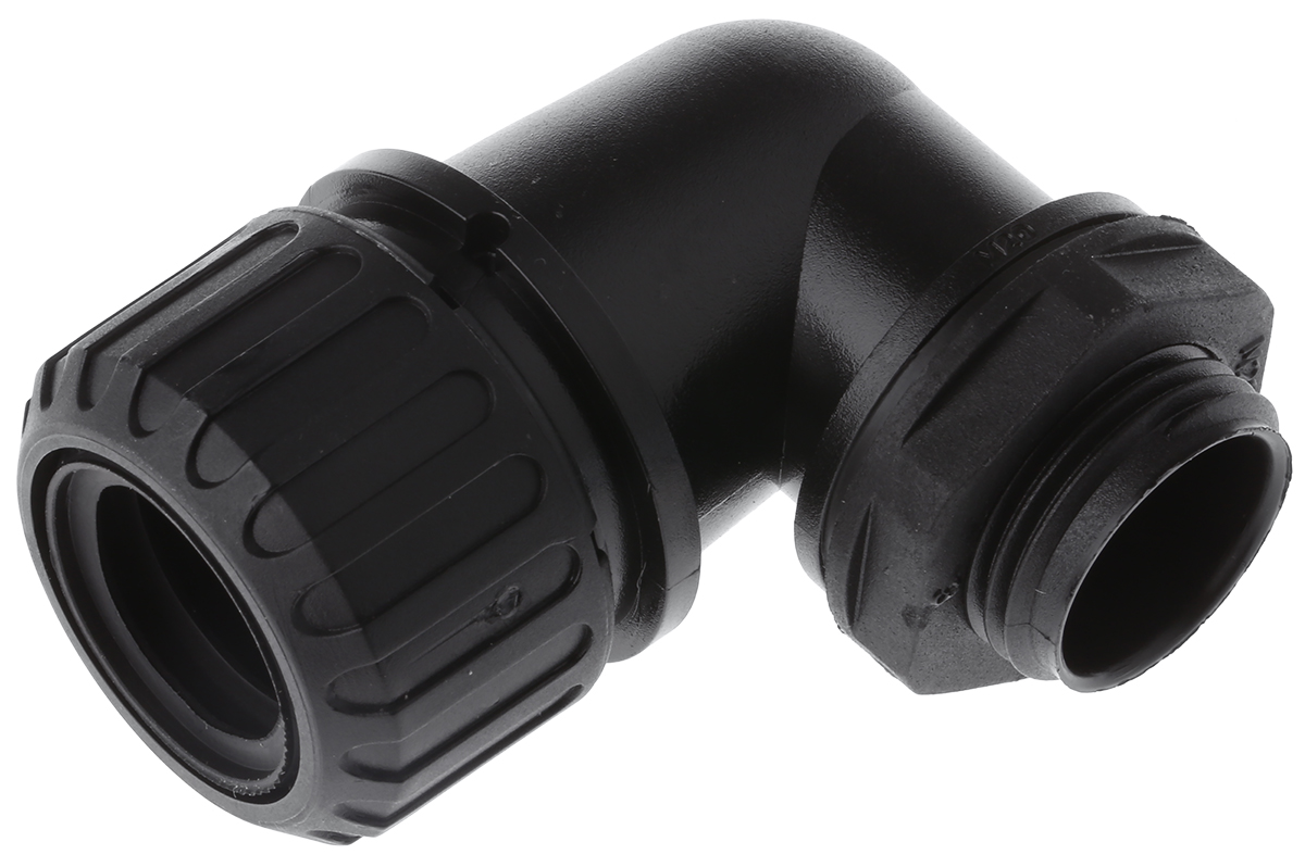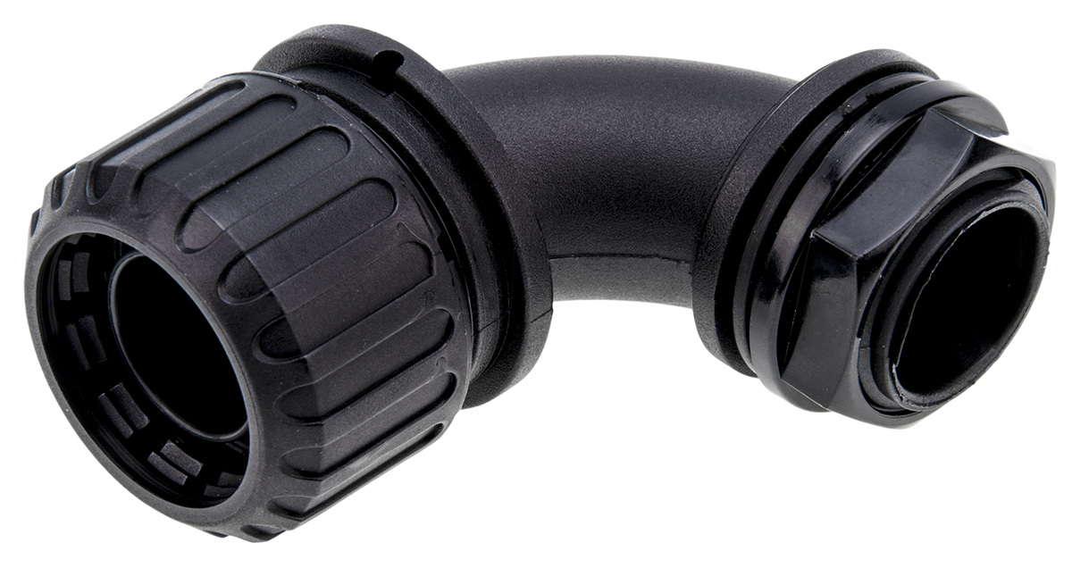 15. Łącznik do kanałów kablowych Adaptaflex gwint M25 25mm Kolanko 90° Nylon 66 IP65 Czarny 167.33