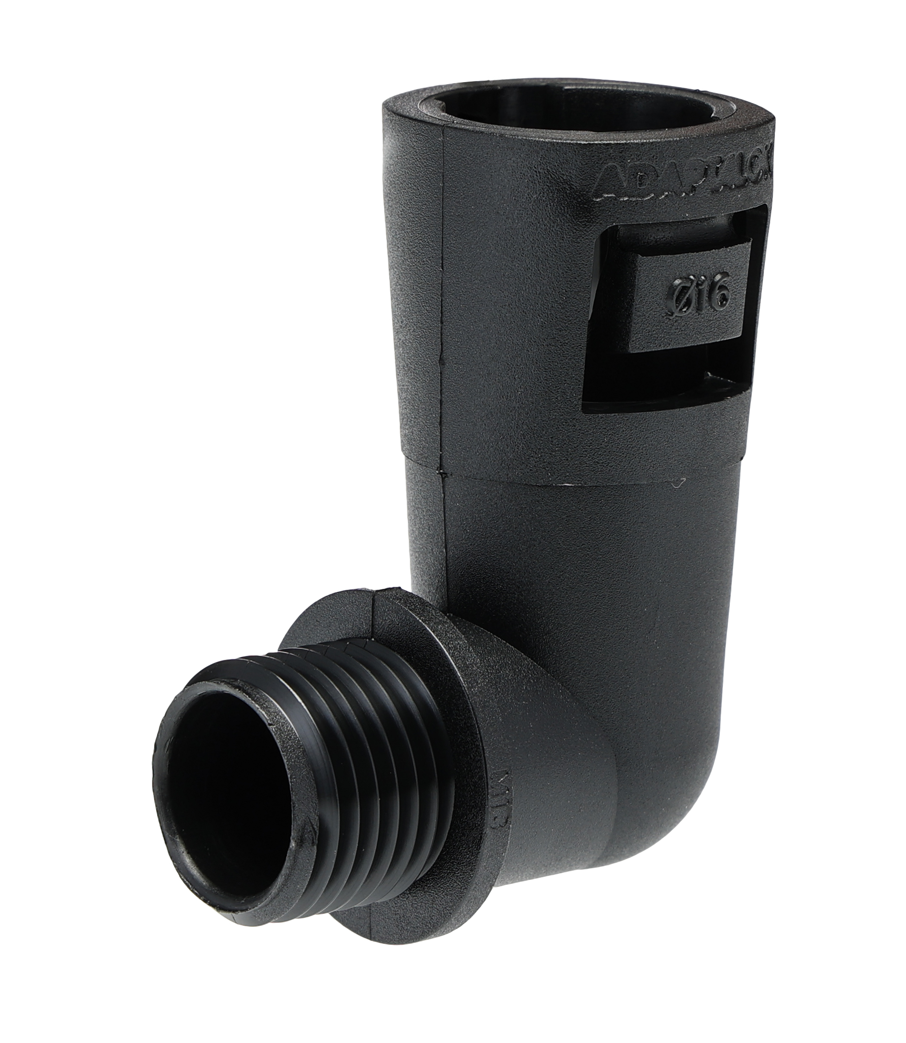 5. Łącznik do kanałów kablowych Adaptaflex gwint M16 16mm Kolanko 90° Nylon 66 IP67 Czarny 142.36