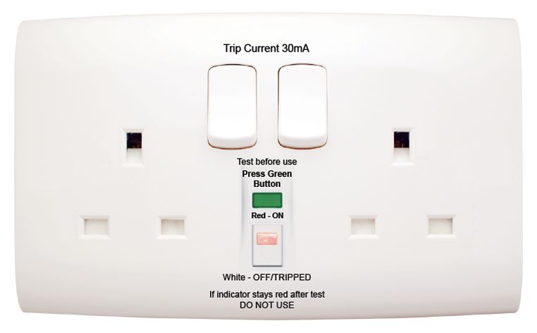 Gniazdo z wyłącznikiem różnicowoprądowym, 13A, BS, l. ścieżek: 2, Zatrzask, Montaż ścienny, 220 → 250 V., IP2X