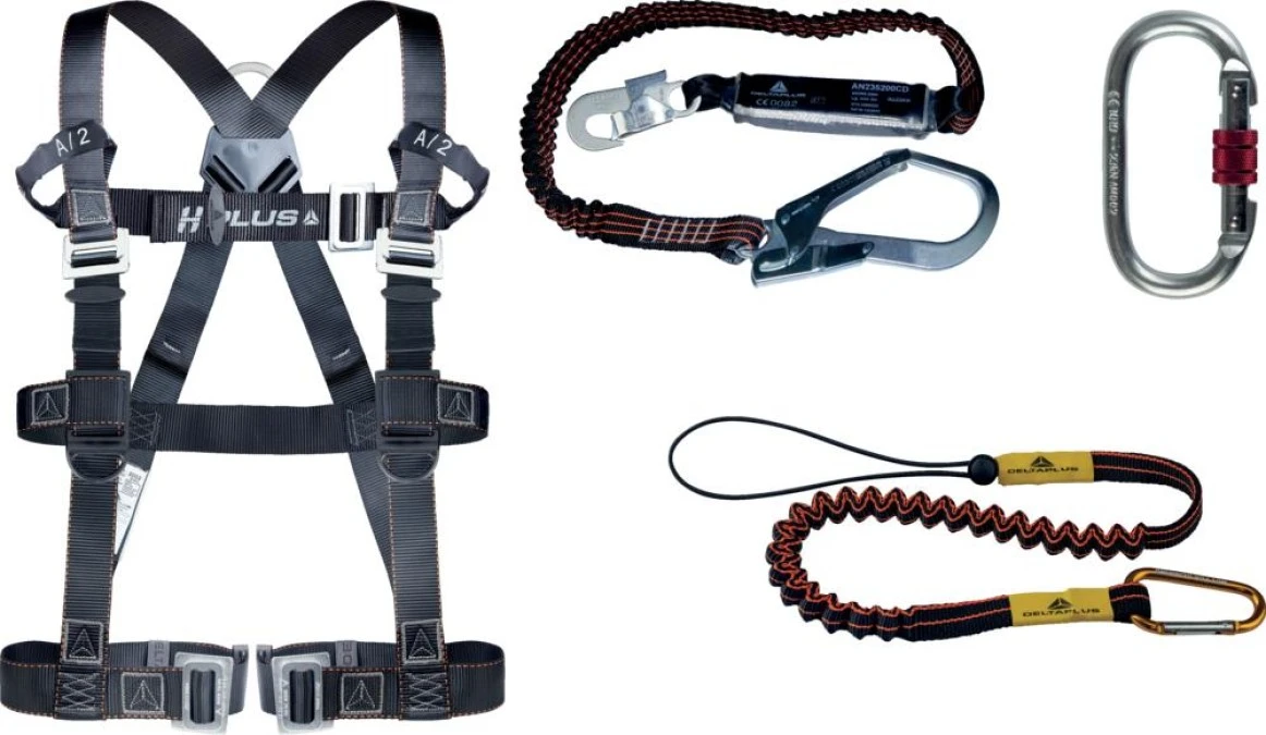 1. Zestaw gotowy do użytku: szelki z 2 punktami zaczepowymi urządzenie samohamowne z liną skręcaną 10m roz.S/M/L ANTI ELARA150 527.09