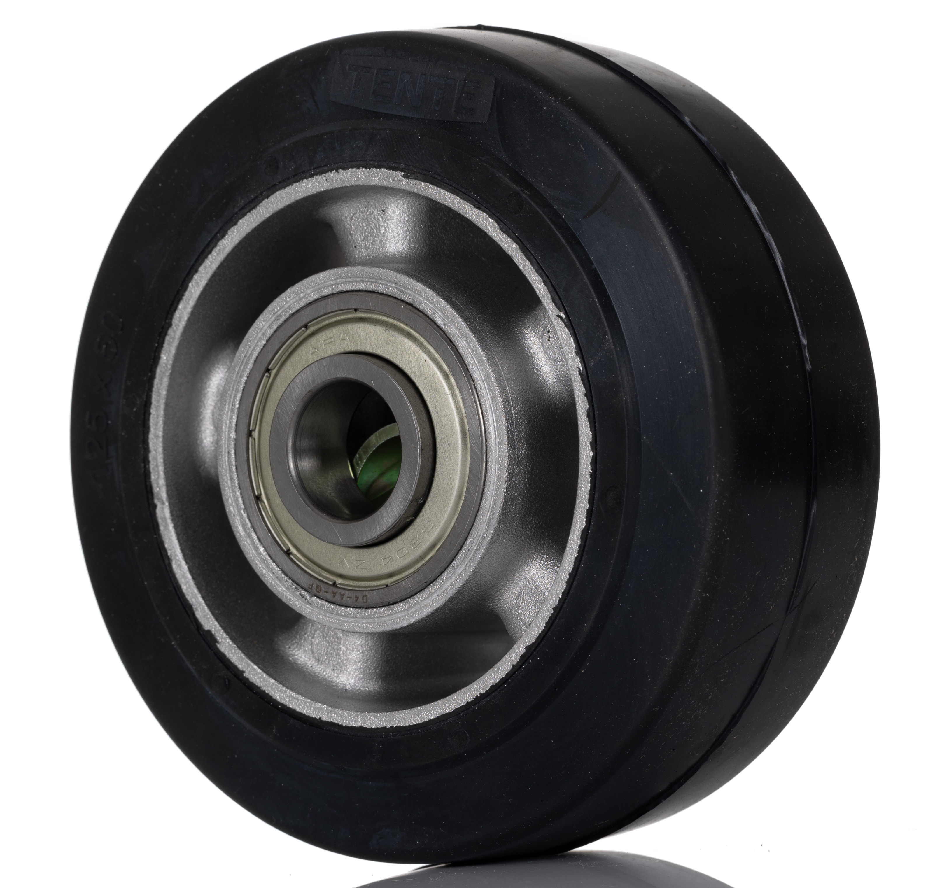 Kółko do wózka, Lite, Guma, Czarny, Srebrny, obc.: 220kg, śred.: 125mm, szer.: 50mm