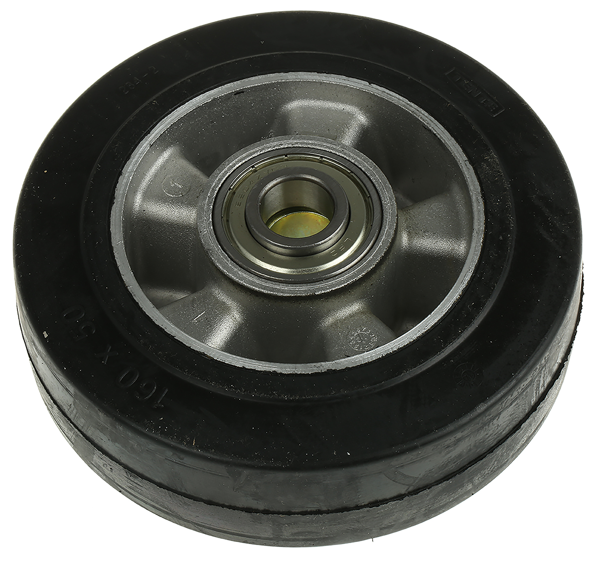 12. Kółko do wózka, Lite, Guma, Czarny, Srebrny, obc.: 300kg, śred.: 160mm, szer.: 50mm 206.55