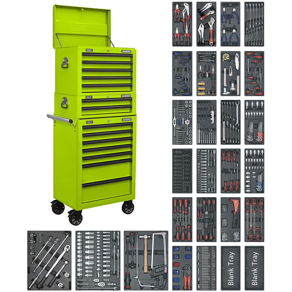 Sealey SPTHVCOMBO1 Superline PRO Tool Chest Combi 14 Drawer+1179pc ToolKit Green