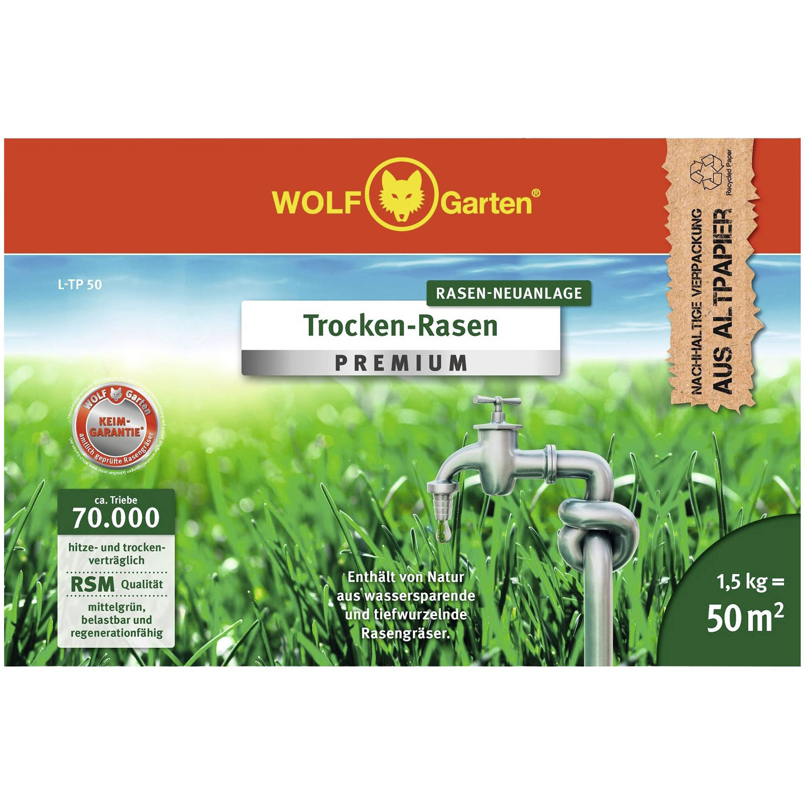 WOLF-Garten 3824641 L-TP100 Lawn Seed for Dry Heat-Tolerant Resilient Lawns
