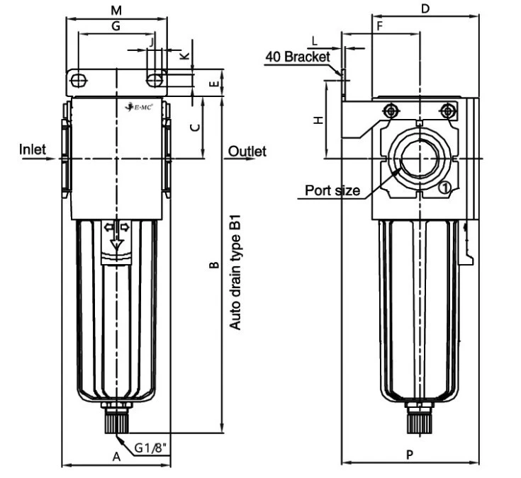 9. Filtr wstępny sprężonego powietrza G 1/8 GW do 10 bar, 5 mikronów 118.08
