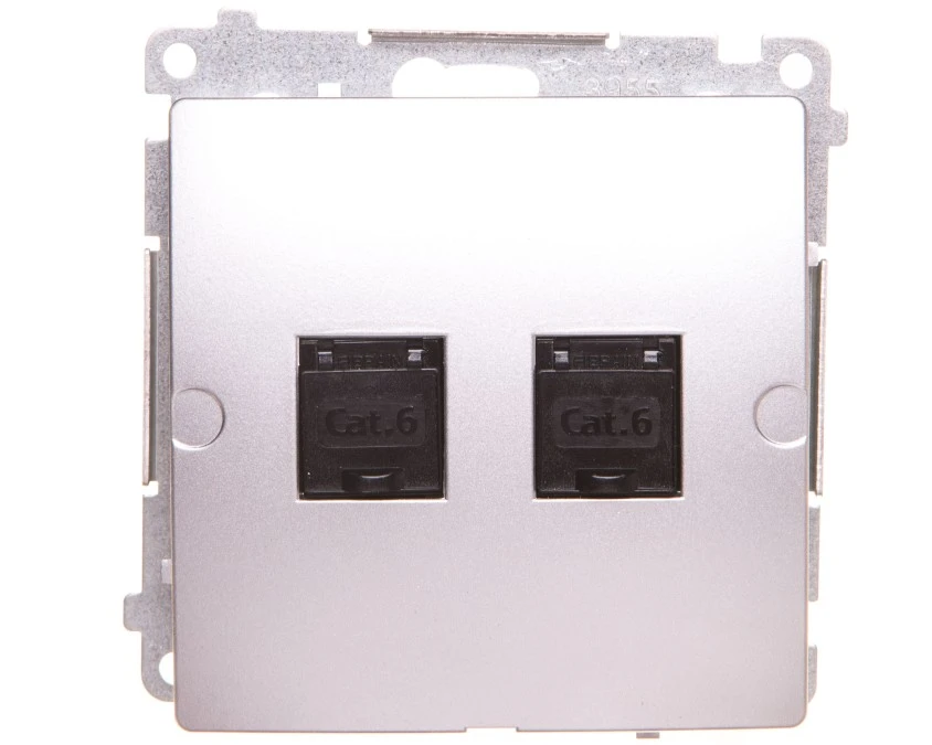6. SIMON BASIC Gniazdo komputerowe RJ45 kat.6 podwójne ekranowane z przesłoną przeciwkurzową (moduł) srebrny mat BM62E.01/43 KONTAK 144.62