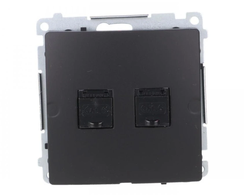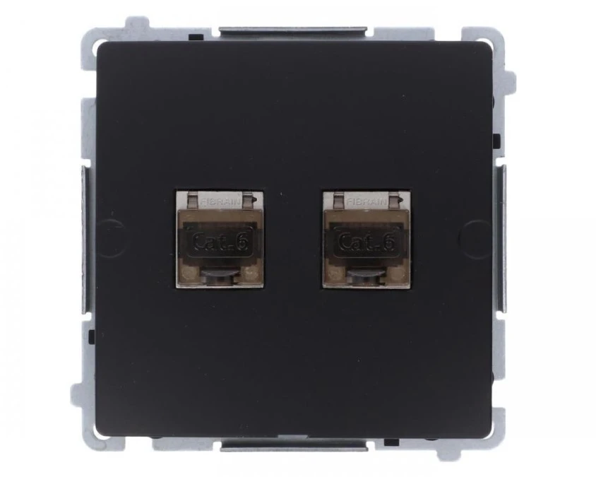 2. Simon Basic Gniazdo komputerowe RJ45, kat 6, podwójne z przesłoną przeciwkurzową (moduł) czarny BM62.01/49 139.67