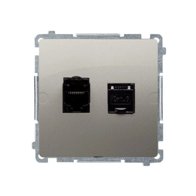 SIMON BASIC Gniazdo komputerowe RJ45 kat.6 podwójne ekranowane z przesłoną przeciwkurzową (moduł) stal inox BM62E.01/21 KONTAKT