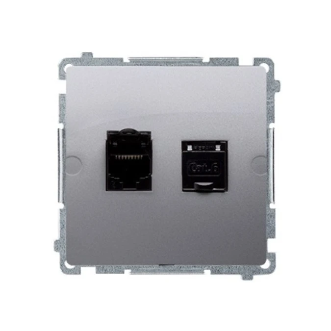 SIMON BASIC Gniazdo komputerowe RJ45 kat.6 podwójne ekranowane z przesłoną przeciwkurzową (moduł) srebrny mat BM62E.01/43 KONTAK