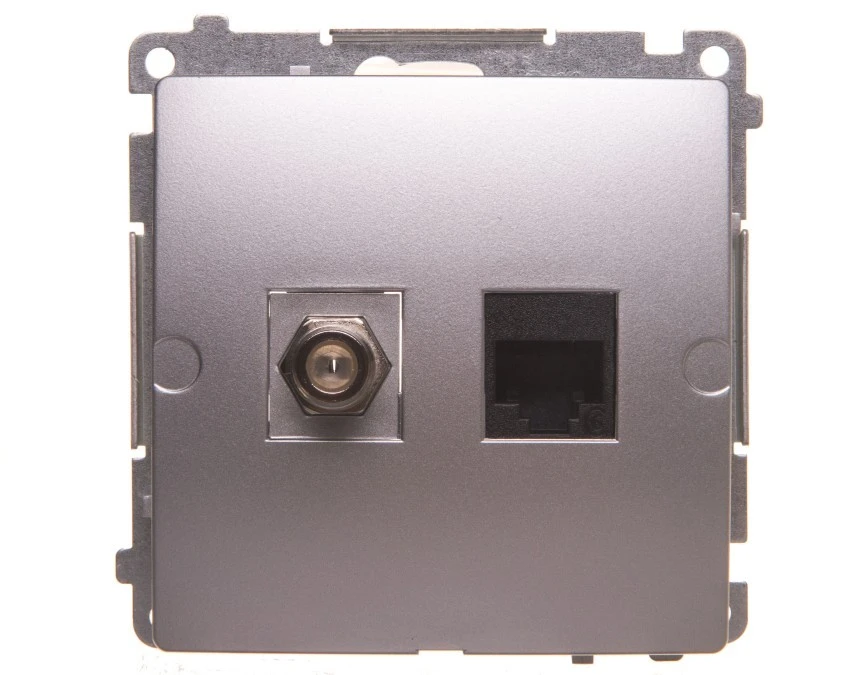 Simon Basic Gniazdo antenowe typu F + RJ45 kat.6 srebrny mat BMAFRJ45.01/43