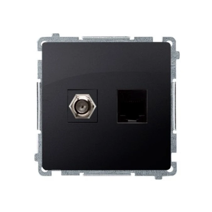 Simon Basic Gniazdo antenowe typu F + komputerowe RJ45 kat.6 grafit matowy BMAFRJ45.01/28