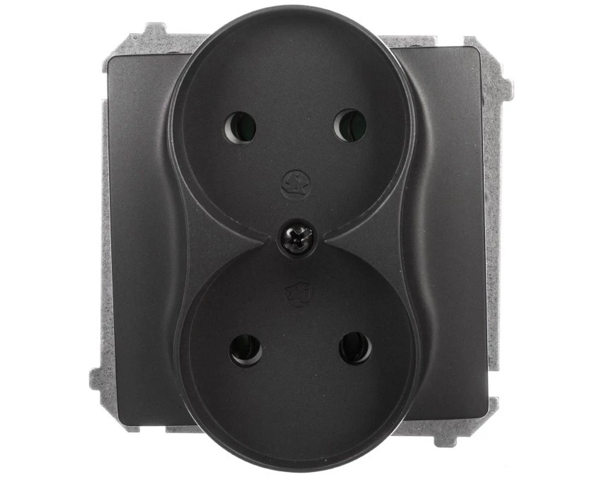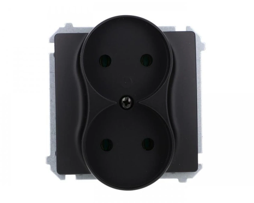Simon Basic Gniazdo wtyczkowe podwójne bez uziemienia (moduł),16A, 250V, zaciski śrubowe czarny BMG2M.01/49
