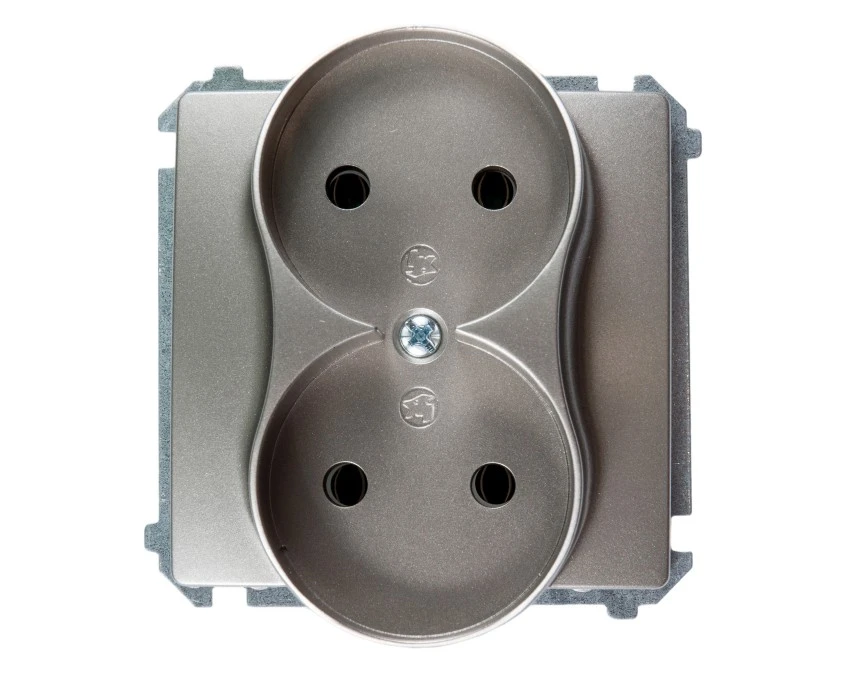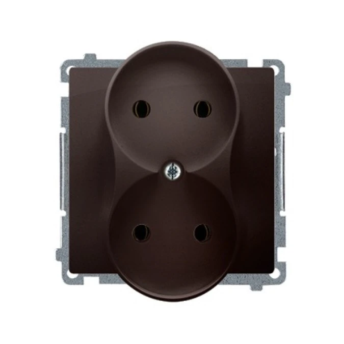 Simon Basic Gniazdo wtyczkowe podwójne bez uziemienia (moduł) 16A 250V zaciski śrubowe czekoladowy BMG2M.01/47
