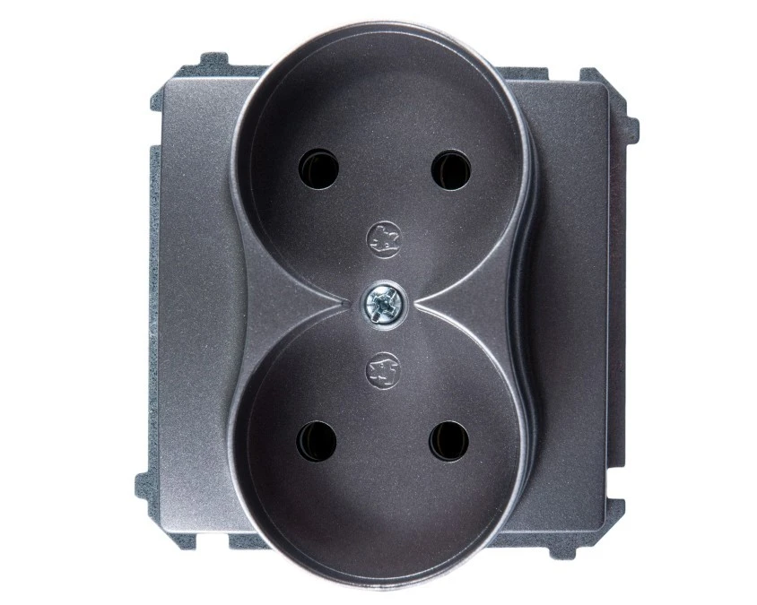 Simon Basic Gniazdo wtyczkowe podwójne b/u (moduł) 16A 250V zaciski śrubowe grafit matowy BMG2M.01/28
