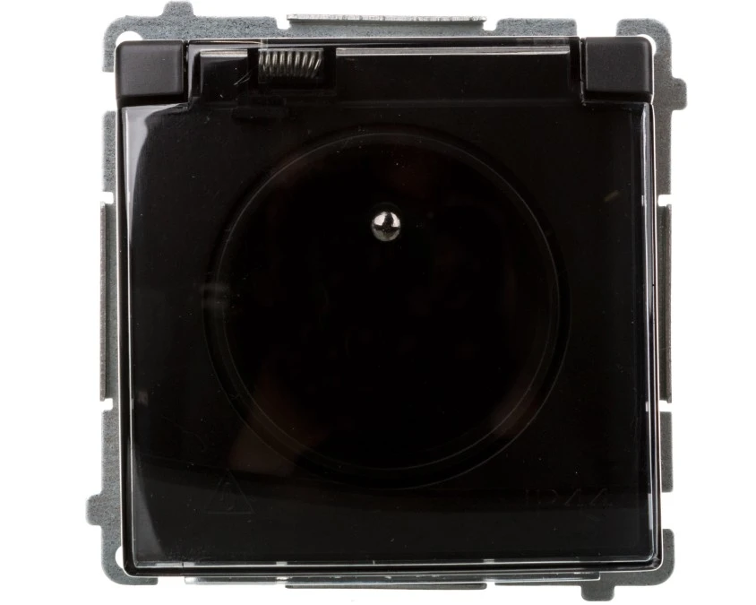 7. Simon Basic Gniazdo wtyczkowe z uziemieniem, IP44 (moduł) 16A, 250V, zaciski śrubowe klapka transp. czarny BMGZ1B.01/49A 30.45