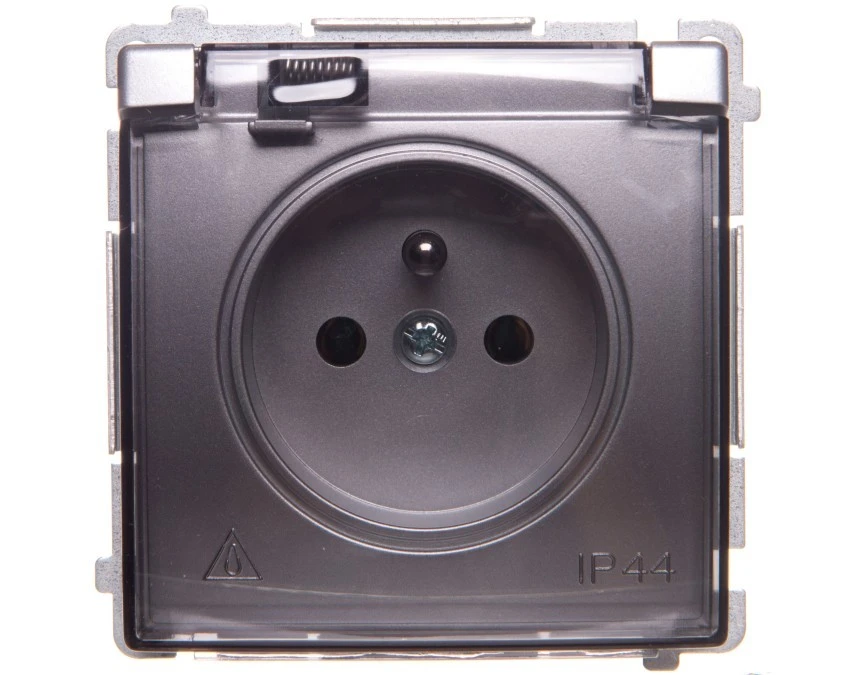 SIMON BASIC Gniazdo pojedyncze z uziemieniem IP44 (moduł) klapka transparentna satynowy BMGZ1B01/29A KONTAKT SIMON