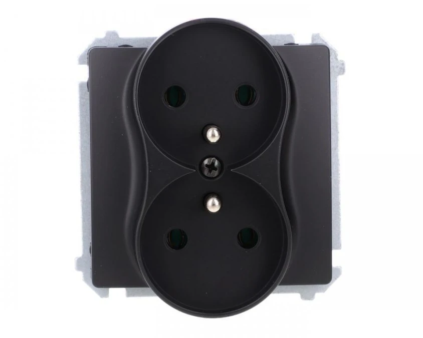 6. Simon Basic Gniazdo wtyczkowe podwójne z uziemieniem (moduł),16A, 250V, zaciski śrubowe czarny BMGZ2M.01/49 28.04
