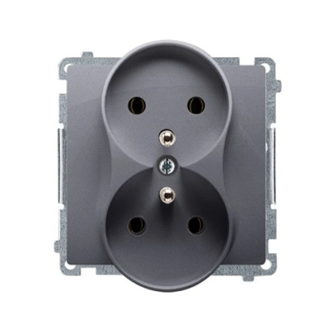 Simon Basic Gniazdo wtyczkowe podwójne z uziemieniem (moduł),16A, 250V, zaciski śrubowe czarny BMGZ2M.01/49