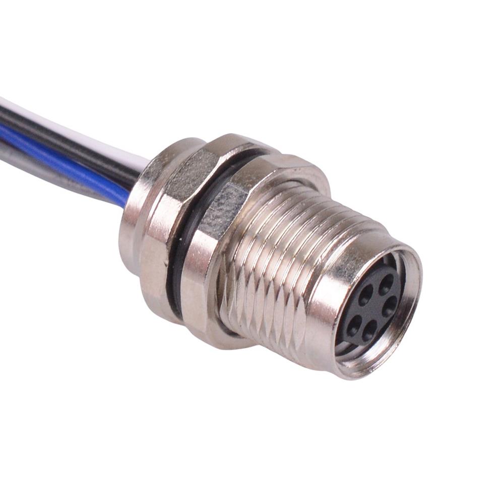 4 Way M5 Prewired Female Rear Mounting Receptacle Circular Connector IP67 1A 60V