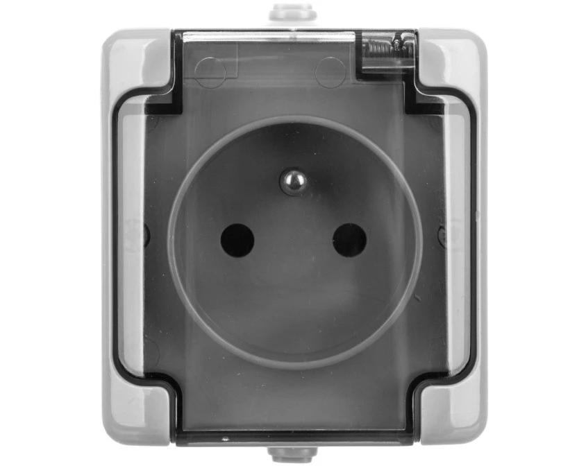 Bryza Gniazdo Hermetyczne Pojedyncze Z/U Ip54 Z Klapką Dymną Szare 180032
