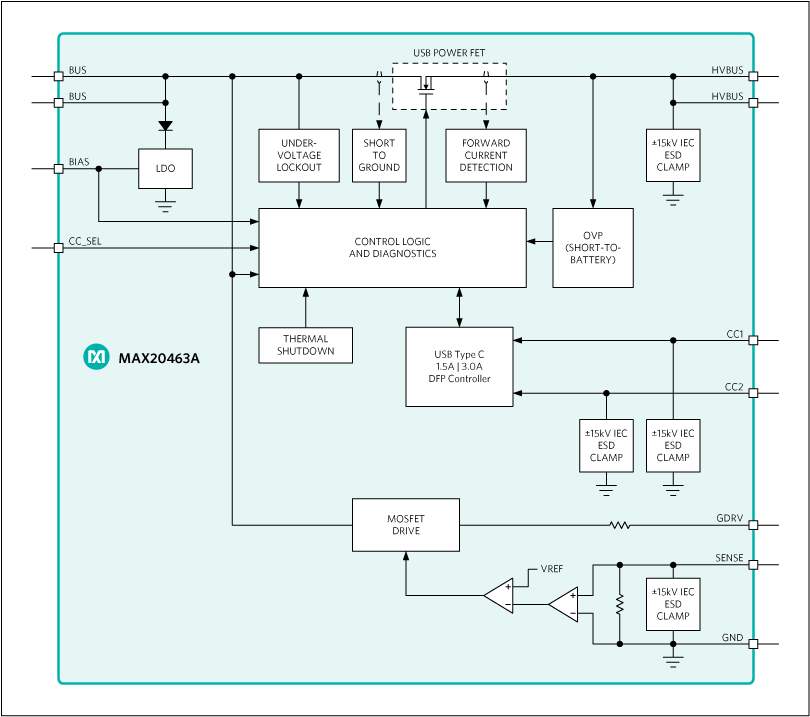 USB Type-C Configuration Channel Logic and Port Control with VCONN