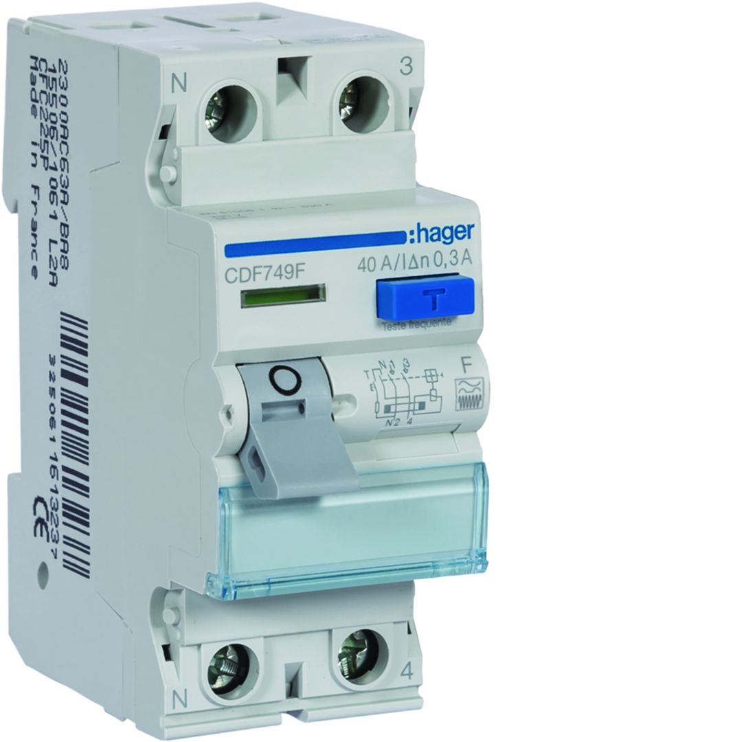 Przełącznik RCD, Typ F, 2-biegunowy, 40A, 30mA, Hager, CDF Hager 230V